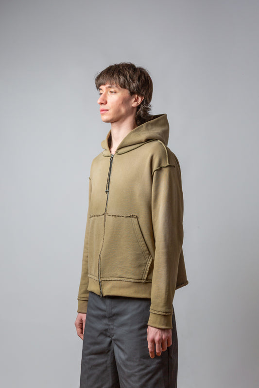 Sold outSUNFADED BRONZE ZIP UP RAW HOODIE