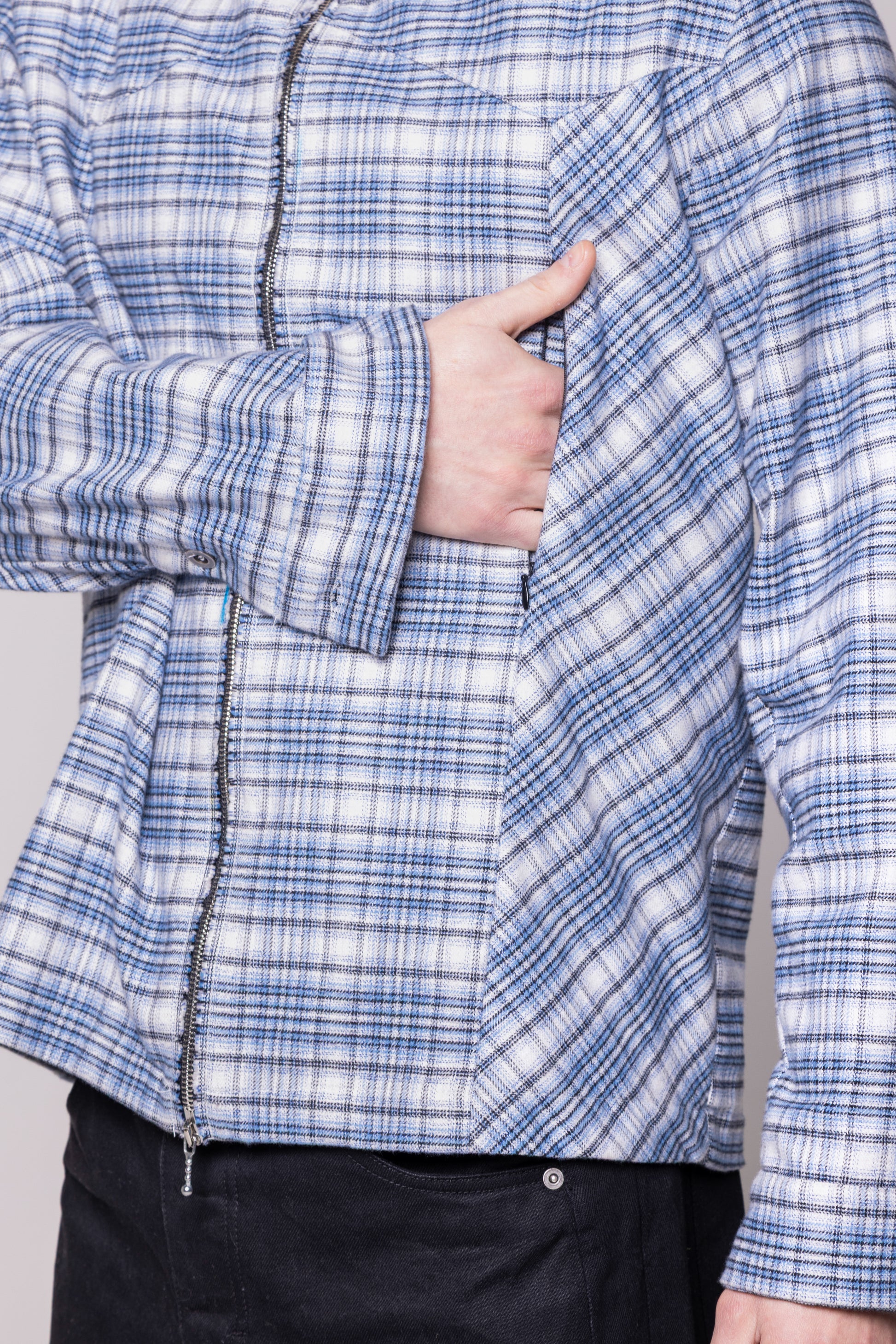 Flanella in 100% cotone con effetto molto comodo e soft. Zip in metallo con doppio cursore e tiretti di ispirazione vintage. Tasca con zip invisibile sul fianco sinistro e pannelli su spalle e back.